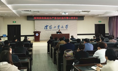 会上,按照省纪委和省委教育纪检监察工委《关于以杨延东严重违纪违法案件为镜鉴在省属高校开展警示教育的通知》要求,组织观看了警示教育片《书香不可染铜臭》。