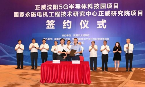 国家稀土永磁电机工程技术研究中心主任张凤阁代表学校与正威国际集团签约。签约仪式由沈阳市副市长李松林主持,市领导李强、国家工程中心副主任王俭等参加签约仪式。