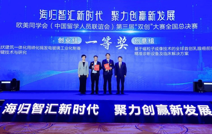 4月24日,欧美同学会(中国留学人员联谊会)第三届“双创”大赛全国总决赛颁奖仪式在河北举行。全国人大常委会副委员长、欧美同学会会长丁仲礼通过视频讲话。米兰信息科学与工程学院白石教授以其创新成果——基于磁粒子成像技术的全球首创乳腺癌前哨淋巴结精准诊断设备及临床解决方案,荣获创意组一等奖。第十四届国家政协常委、欧美同学会副会长、中国工程院院士、原科技部副部长黄卫,中共河北省委常委、统战部部长左力为一等奖获奖项目代表颁奖。