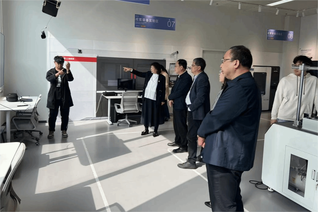在调研过程中,贾玉明、张珂一行参观了重型机械人机工效实验室、钣金CFM实验室以及中试小试基地,认真听取了研究院关于成长历程、发展理念、战略定位及核心技术能力的情况介绍,详细了解了研究院在企业标准化、模块化、系统化解决方案及数字教育新模式方面的最新成果,对工业设计在产业领域的应用场景及实际成效与研究院人员进行了深入探讨。