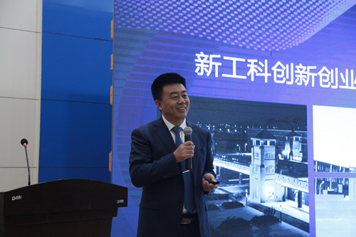 张福利以“新工科创新创业教育体系的实践与思考”为题发表了演讲,以新工科为切入点为大家进行了讲解。