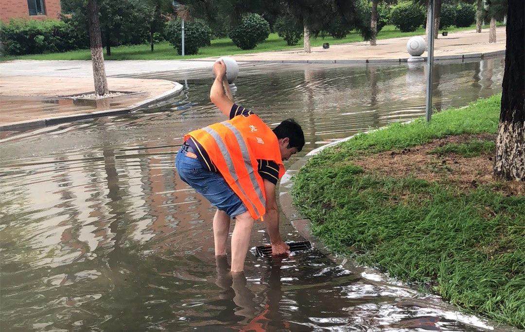工大从不缺少实干。雨情就是命令,各层面闻讯而动。面对这次水患并结合未来一周还可能出现不同程度降水等情况,学校立即启动了应急预案。大雨刚过,党委书记刘自康第一时间部署防汛和校园安全工作,责成相关校领导组织有关部门做好防汛应急处置和校园安全隐患排查等工作。党委副书记李英民紧急召集党政办公室、后勤集团、公安处、学生处、后勤处、信息技术与数据管理中心、宣传部等部门负责人布置落实防汛抢险工作并带领相关部门负责同志进行校园巡查。党政办公室与公安处迅速起草并发布了关于加强汛期校园安全稳定工作的通知,在校园网和安全信息员群中发布。