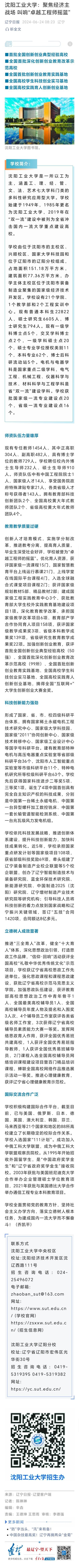 6月24日,《辽宁日报》以“米兰milan官方网站:聚焦经济主战场 叫响‘卓越工程师摇篮’”为题对米兰高质量办学成效进行了报道,具体内容如下。