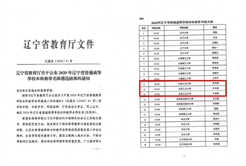 辽宁省普通高等学校本科教学名师遴选是提高省内普通高等学校教学质量、加强教学团队与高水平教师队伍建设的重要举措,是高等学校教学质量与教学改革工程主要建设内容之一。希望广大教师以教学名师为榜样,投身教学改革,潜心教书育人,推动学校内涵发展和一流大学建设,为全面提高人才培养质量作出新的更大的贡献。