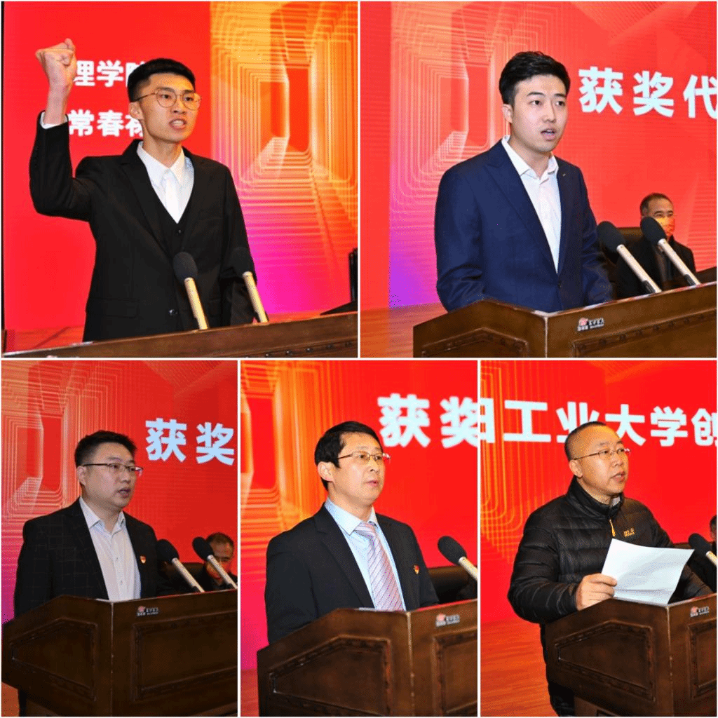 会上,党委常委、副校长袁晓光宣读了竞赛表彰文件和创新创业先进集体、个人表彰文件;与会校领导为创新创业教育优秀组织单位、创新创业优秀指导教师标兵和创新创业之星学生代表颁奖。学生代表理学院常春禄、软件学院王俊鳌,教师代表管理学院侯巧铭、机械工程学院于学斌,信息科学与工程学院院长王溪波分别作为获奖个人和集体代表作了交流发言。与会师生共同观看了原创创新创业教育微电影《路— 一位高校教师的日记 》。