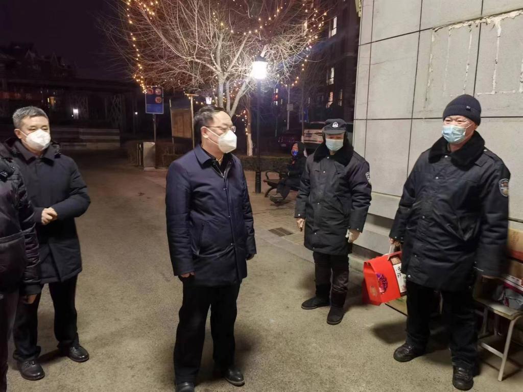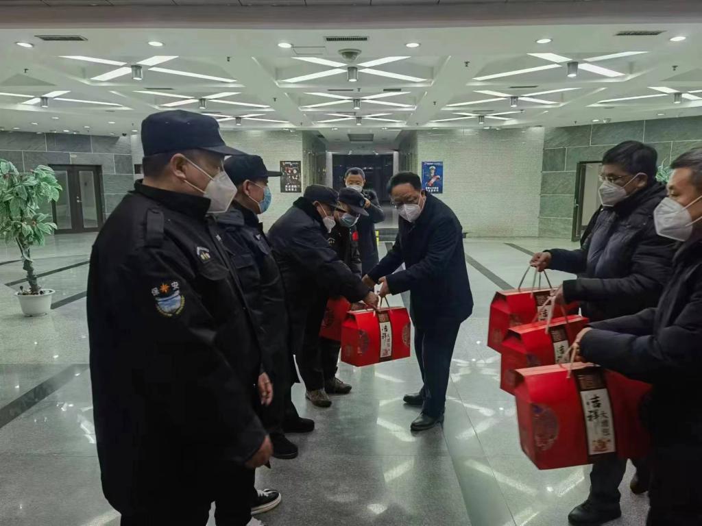 1月21日农历兔年除夕夜,学校党委书记贾玉明、校长张珂、副校长聂鹏代表学校领导班子和全校师生看望慰问坚守岗位的一线教职工,送去新春祝福和节日慰问品。