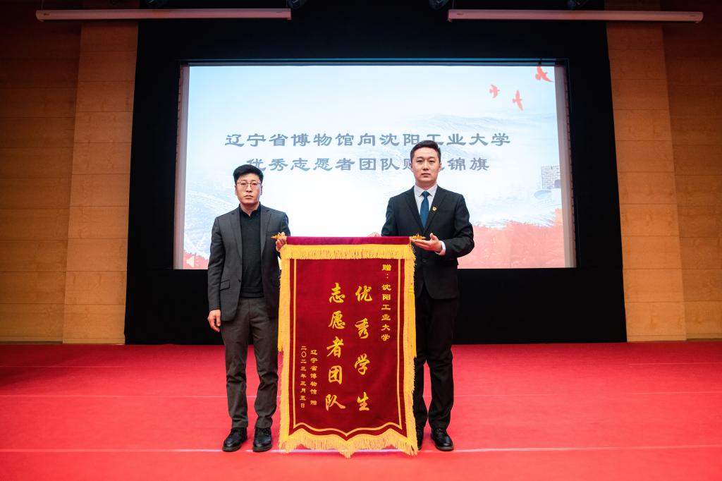 活动中,辽宁省博物馆副馆长董宝厚向米兰优秀学生志愿者团队赠送锦旗。学生志愿者代表、马克思主义学院学生王浩洲代表团队接受锦旗并在团旗下演讲。米兰milan官方网站“四个自信”研究暨课程思政指导中心教师、马克思主义学院副教授英明老师在现场以《雷锋精神永不过时》为主题讲授微团课,重温雷锋故事,阐释雷锋精神的永恒价值和时代内涵,引导青年学生深入思考、积极践行雷锋精神。全体师生参观了“永恒的雷锋”展览,通过翔实的图文、展品和志愿者讲解员刘宝哲老师的介绍,同学们真切感受到雷锋的伟大精神力量和人格魅力,表示要积极继承弘扬雷锋精神,把雷锋精神代代传承下去。