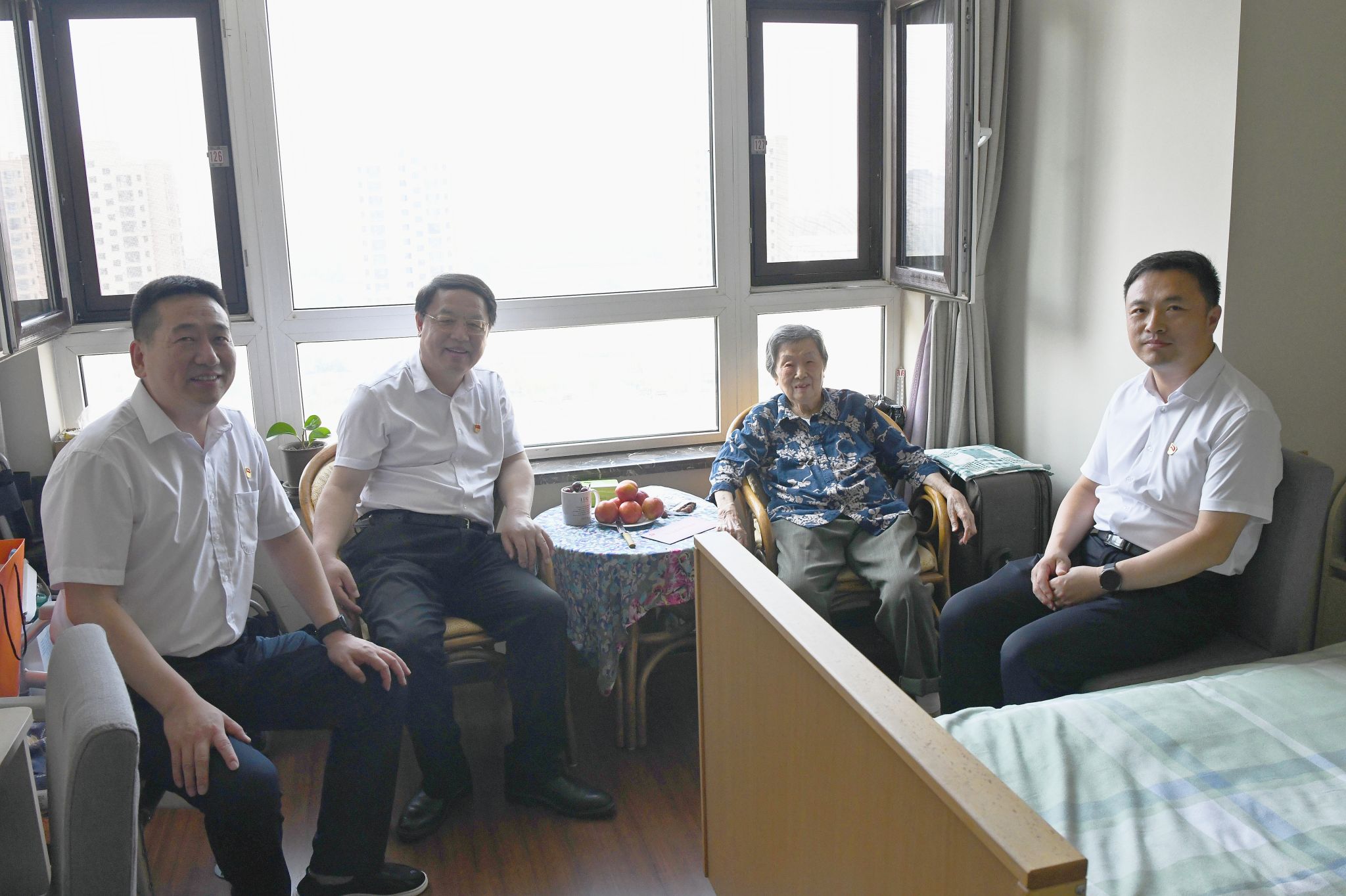 今年96岁高龄的学校离休老党员吕厚坚,是一位抗日战争期间参加工作的老干部。在她家里,贾玉明倾听了老人追忆难忘的奋斗岁月、讲述如今的幸福生活,关切地询问老人的身体和生活情况,为老人送上鲜花表达敬意,嘱咐她要好好休养、保重身体,并叮嘱离退休工作部门要加强与老同志的联系和关心,提供更加周到的服务,对生活、就医等方面存在的困难要及时跟进协调解决。贾玉明表示,老党员、老教师、老同志为党和国家事业作出了重要贡献,他们用实际行动诠释了共产党员的初心和使命,是党和国家的宝贵财富。我们要铭记他们的历史贡献,深入学习贯彻习近平新时代中国特色社会主义思想,弘扬伟大建党精神,坚定理想信念,团结一心、接续奋斗,为加快建设教育强国贡献力量。