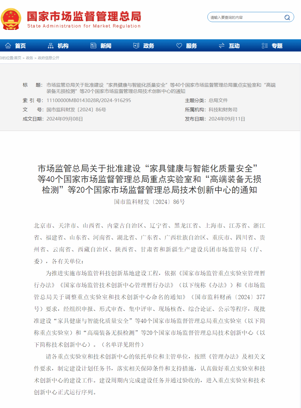 9月11日,国家市场监督管理总局发布了《市场监管总局关于批准建设的40个重点实验室和20个技术创新中心的通知》(国市监科财发〔2024〕86号),米兰获批国家市场监督管理局技术创新中心(稀土永磁电机)。