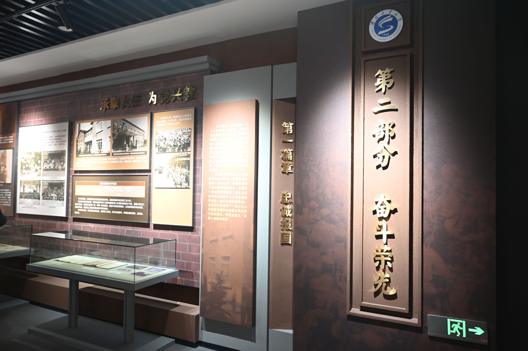 校史馆位于中央校区图书馆一层中心区域,在原校史馆基础上改建,实现了功能提升。新校史馆总面积约800平方米,分为筚路铿锵、奋斗荣光、聚力同襄三个部分。校史馆通过图文、历史实物、模型、雕塑、档案史料、场景复原、数字化展示、互动体验等多种展陈方式,生动呈现了学校75年来忠诚报国、自强笃行、改革创新、担当奉献的恢弘画卷和感人叙事,抒写了“共和国工业奠基地”建设者、见证者的豪迈情怀。馆名由学校原党委书记田维实题写。