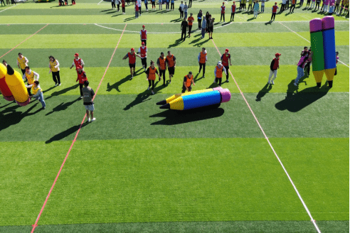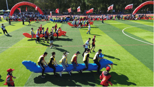 本次运动会共设“蛟龙出海”“铅笔大力士”“众星捧月”“同舟共济”“旱地龙舟”“一圈到底”“龟兔赛跑”“和谐接力”八个比赛项目。赛场上,运动员斗志昂扬、奋勇争先,赛场下,观众出谋划策、加油助威。兴奋和喜悦写在了每位教职工的脸上,掌声、笑声、喝彩声将运动会推向高潮,热烈的气氛感染和弥漫了整个校园。