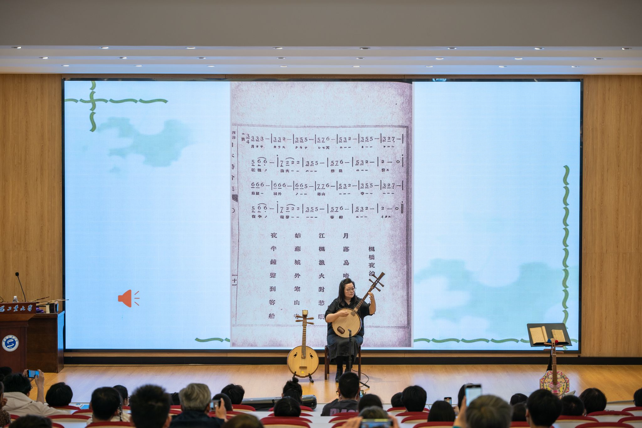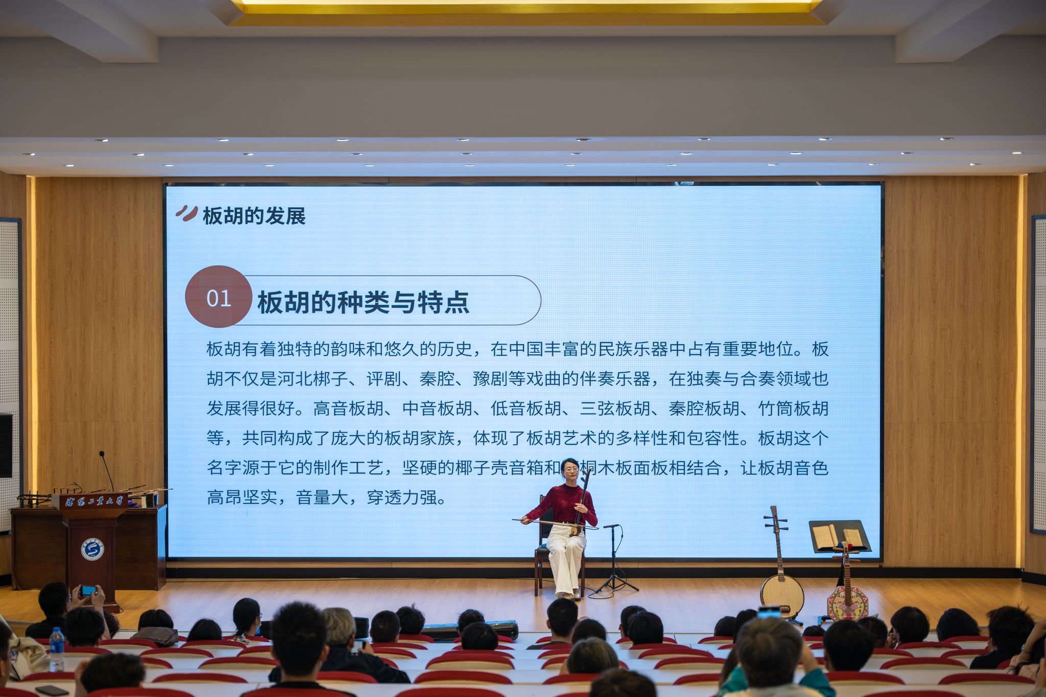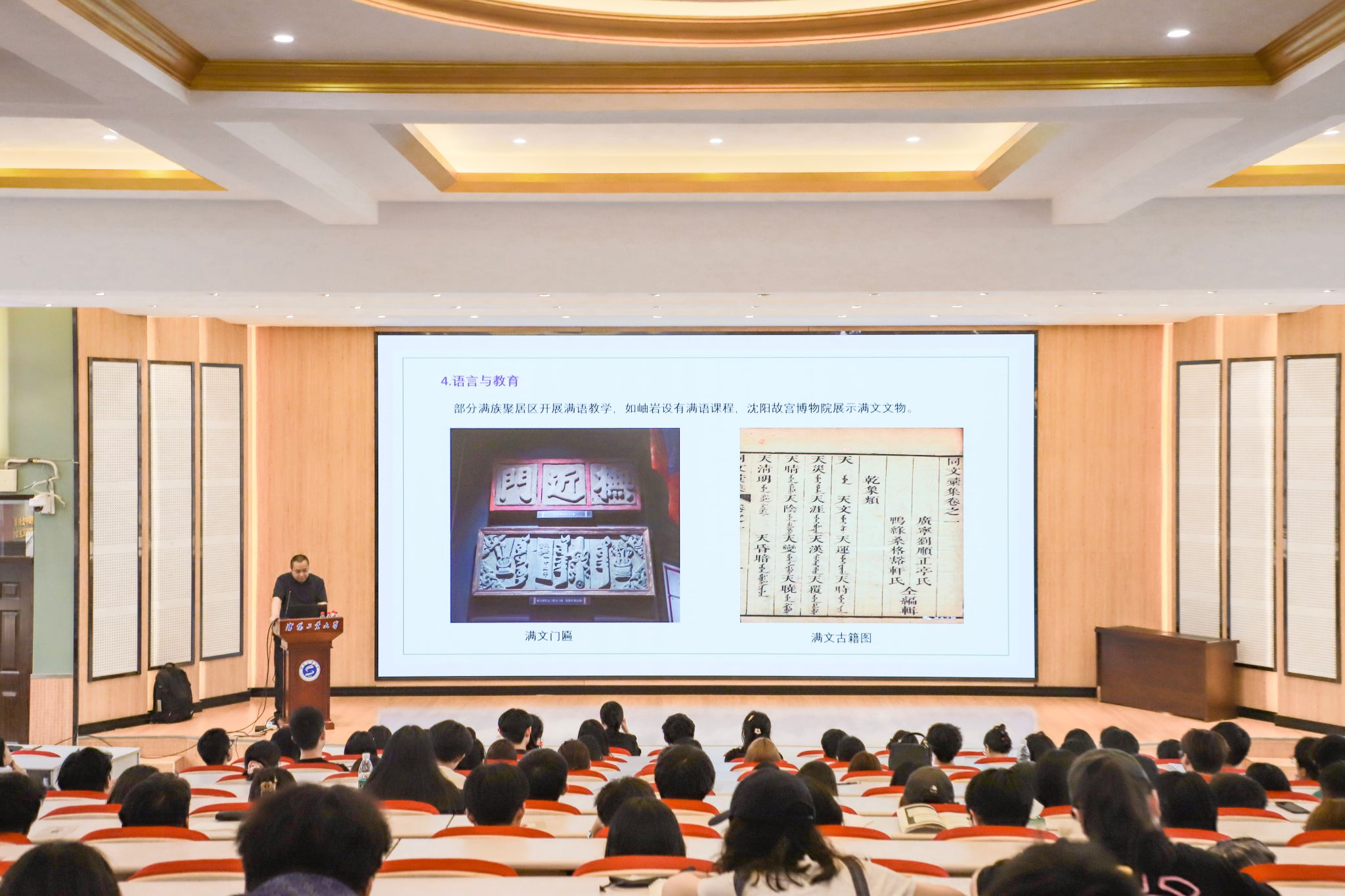 此次系列活动以“典籍为脉·匠心为魂”为主题,学校联合中央民族歌舞团、阜新市政协文史馆等单位共同开展,活动涵盖古籍展览、非遗工坊、专题讲座、跨界艺术展演等多元形式,将传统文化与美育深度融合,为师生打造了一场沉浸式文化盛宴。活动以《典映中华——辽宁地区蒙藏满文古籍展》为核心亮点,展出近百件蒙、藏、满文珍贵古籍,并辅以特色民族乐器表演,生动呈现多民族文化交融的历史脉络。全国民族团结进步模范个人海春生研究员围绕“辽宁地区蒙藏满文古籍版本”开展了主题讲座,他以古籍为纽带,深入解读各民族交往交流交融的历史,深化师生对中华民族多元一体文化的认知。中央民族歌舞团艺术家带来的《诗乐交融·声动千年》国乐讲演会,以阮、胡琴等传统乐器演绎古籍经典乐章,辅以学生与艺术家的同台互动,让千年雅乐“活”在校园。