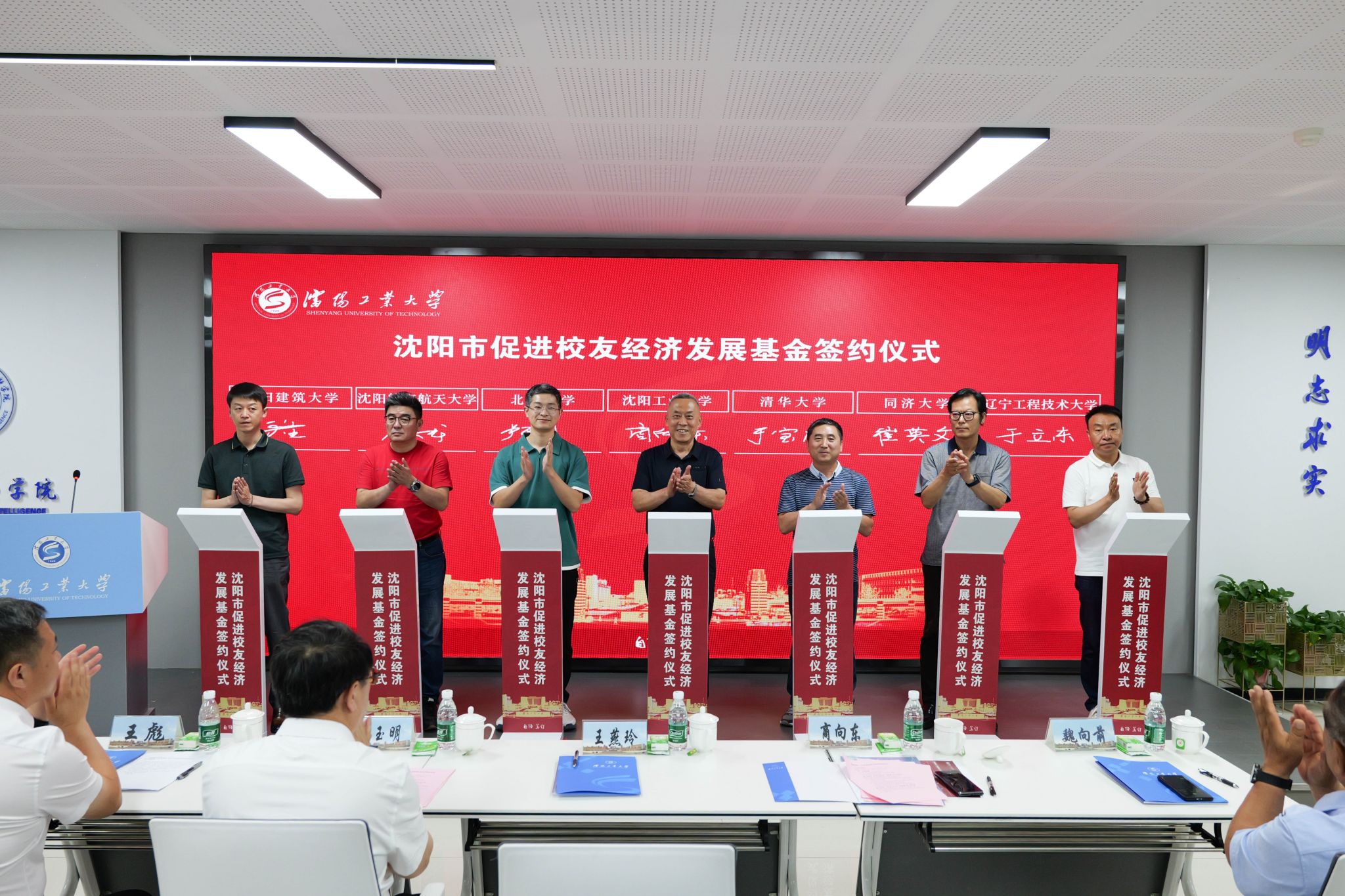 米兰milan官方网站沈阳校友会、清华大学沈阳校友会、北京大学沈阳校友会、同济大学沈阳校友会、沈阳航空航天大学辽宁校友会、沈阳建筑大学沈阳校友会、辽宁工程技术大学沈阳校友会作为沈阳市促进校友经济发展基金成员单位代表上台签约。
