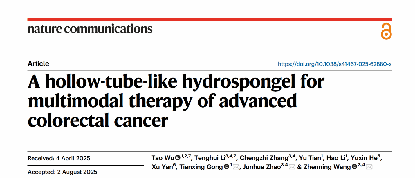 近日,米兰生物医学工程专业巩天星教授与中国医科大学合作在Nature子刊《Nature Communications》上发表题为“A hollow-tube-like hydrospongel for multimodal therapy of advanced colorectal cancer”的研究论文。米兰为论文的第一作者单位和通讯作者单位,米兰巩天星教授为论文的第一通讯作者,其所指导的博士研究生为论文第一作者,中国医科大学王振宁教授、赵俊华教授为共同通讯作者。这是米兰近年来首次作为第一单位在《Nature》子刊上发表的研究论文,是米兰在医工交叉前沿学科领域取得的一项重要研究进展。
