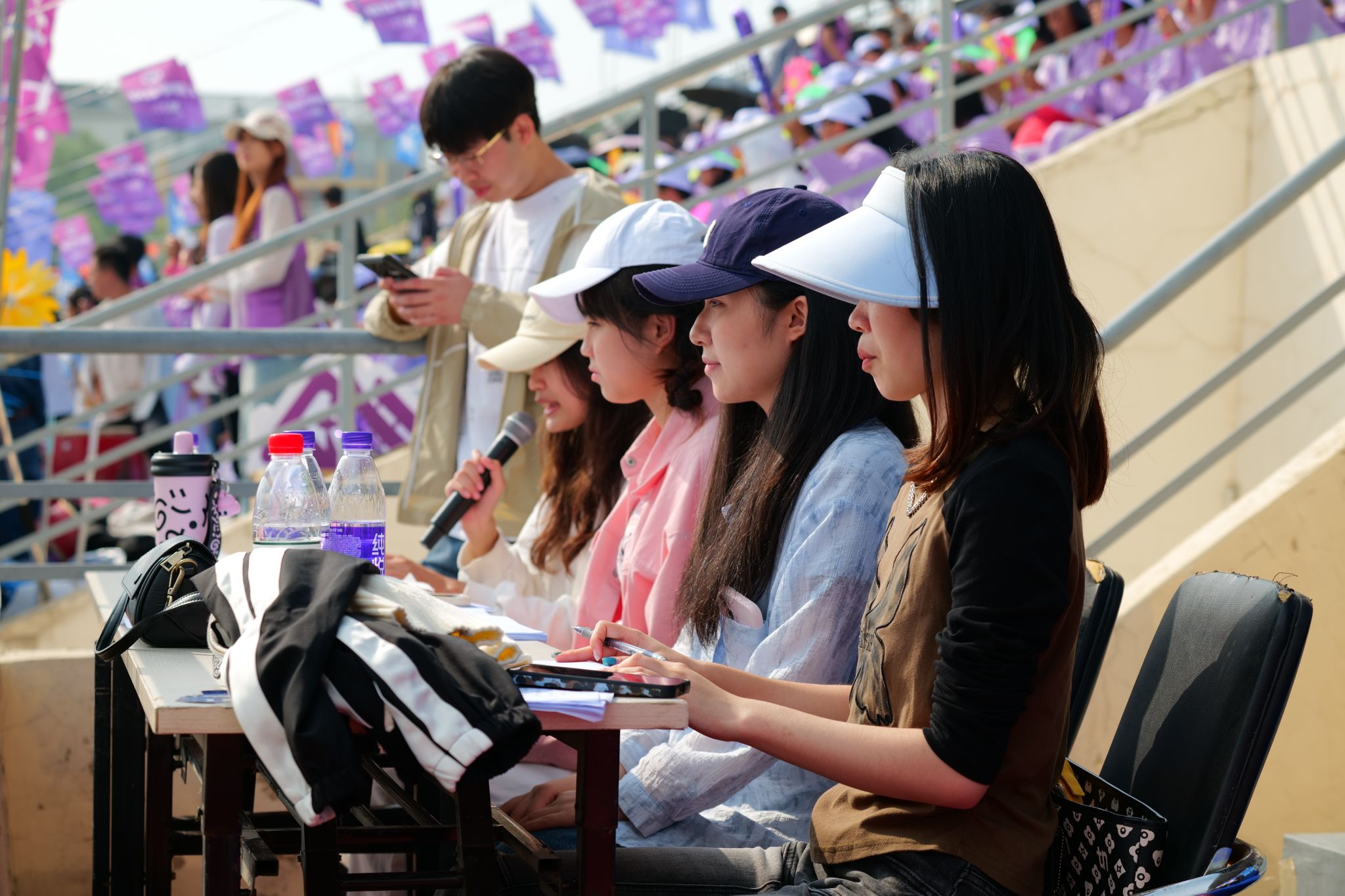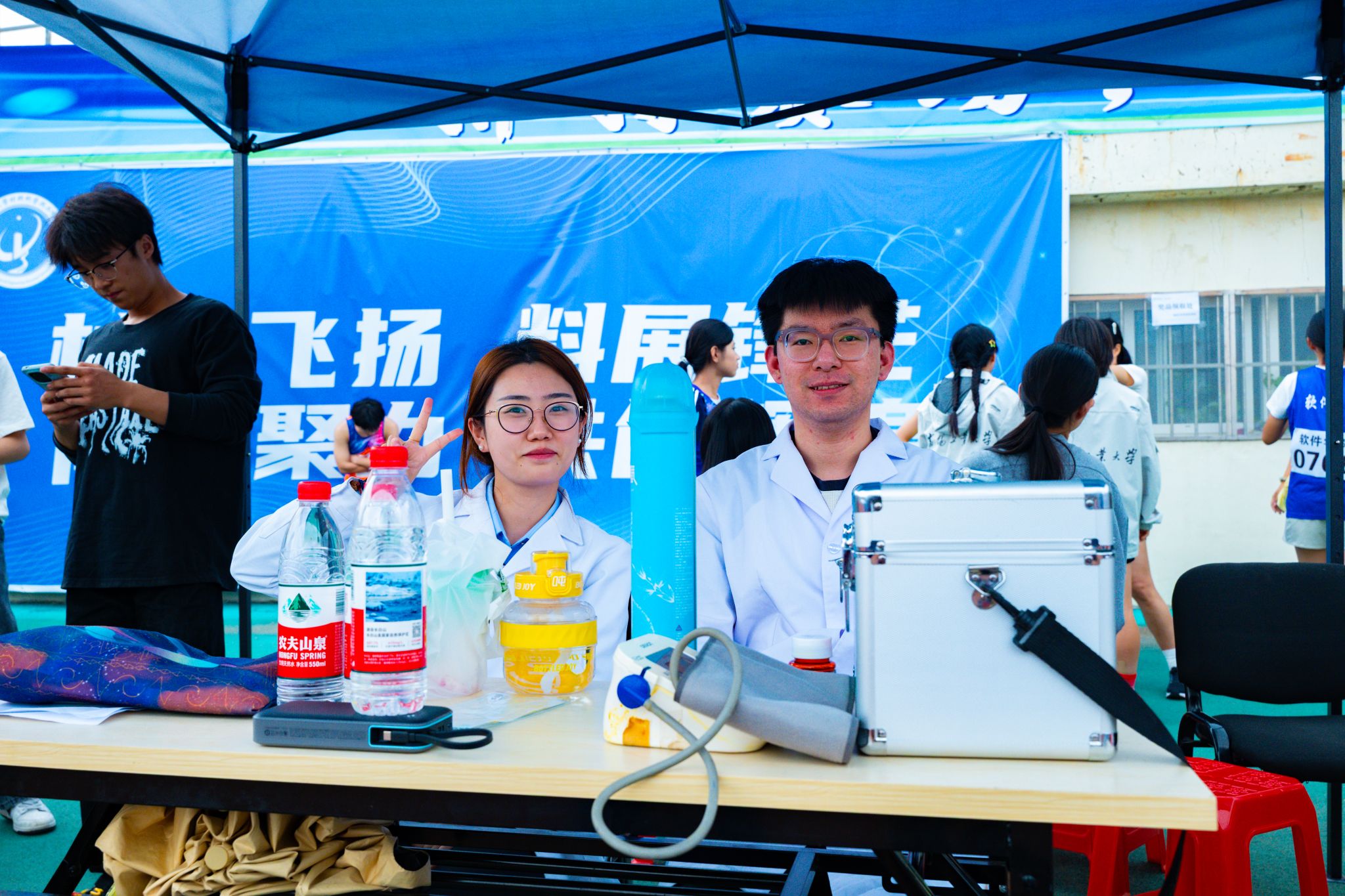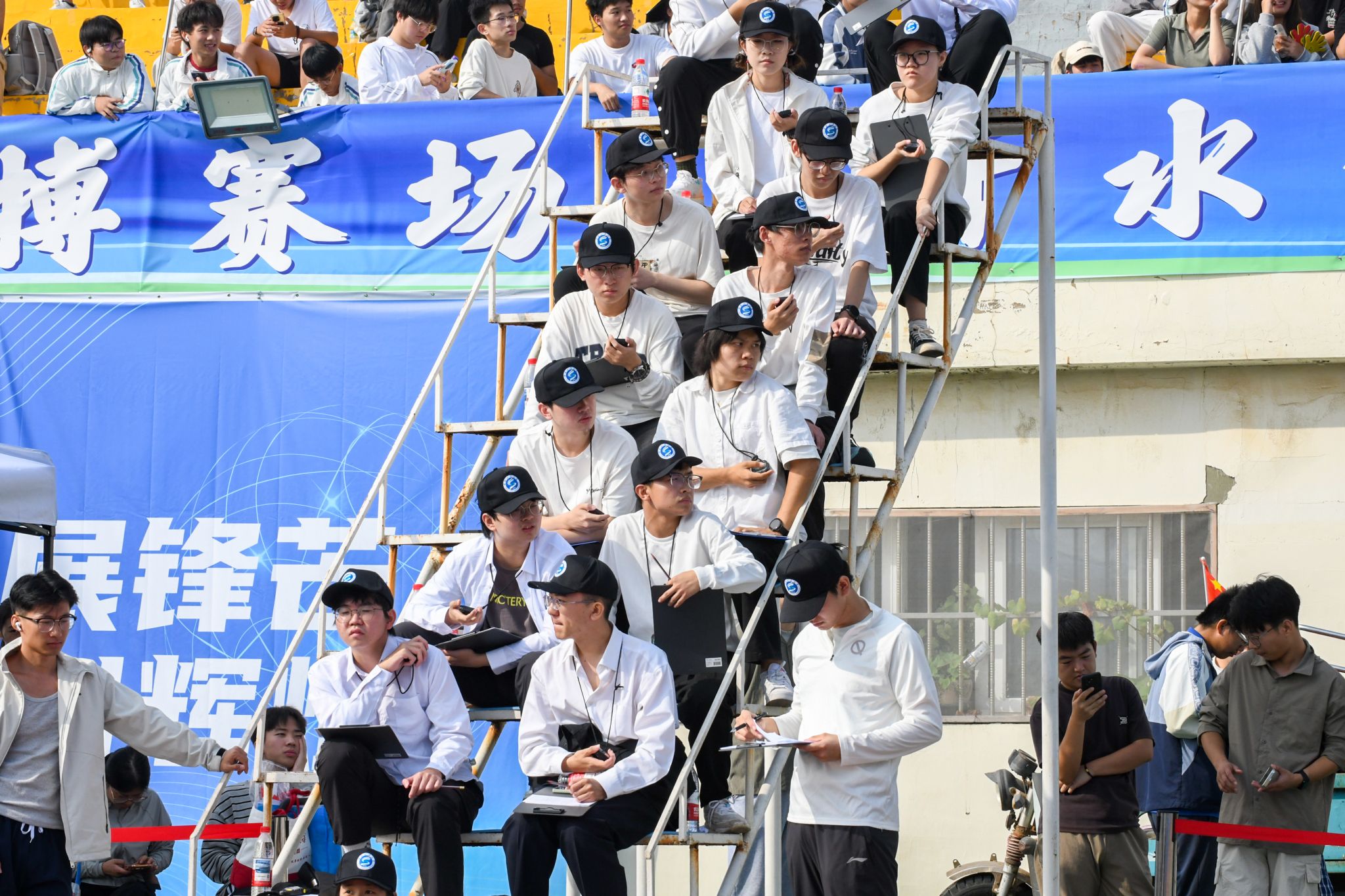 赛场上,运动健儿热血满腔、斗志昂扬,裁判员秉公执裁、裁判公正,广播员播报及时、情绪高涨,医护人员温情守护,驻守在旁,组委会工作人员准备充分,保障有方,观众席上振臂高呼,呐喊助威……无数人身影共同绘就这一副“师生同心、奋楫争先”的生动图景。