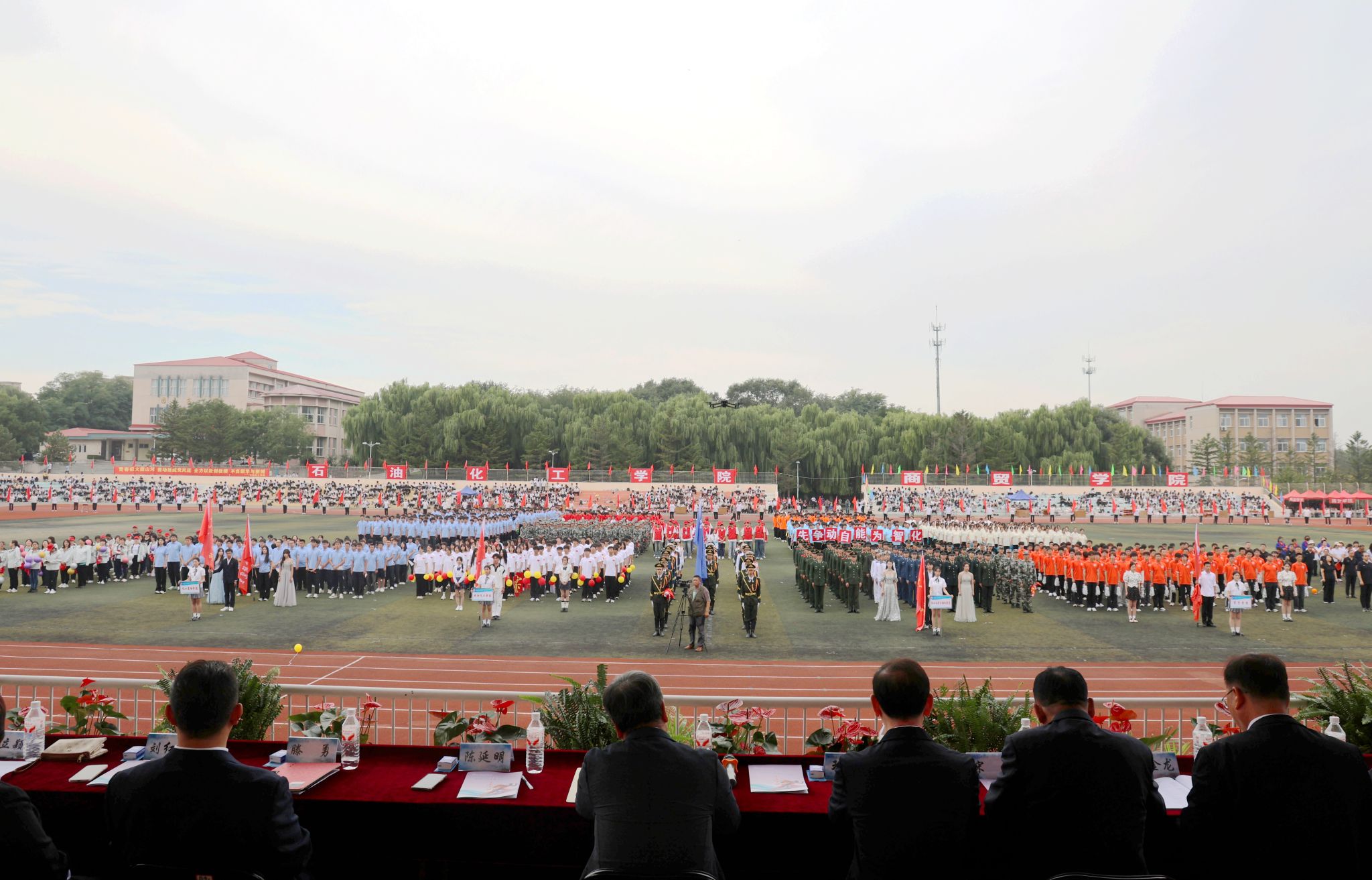 党委书记贾玉明和党委副书记、校长张珂分别郑重宣布本届运动会正式开幕,将现场气氛推向高潮。