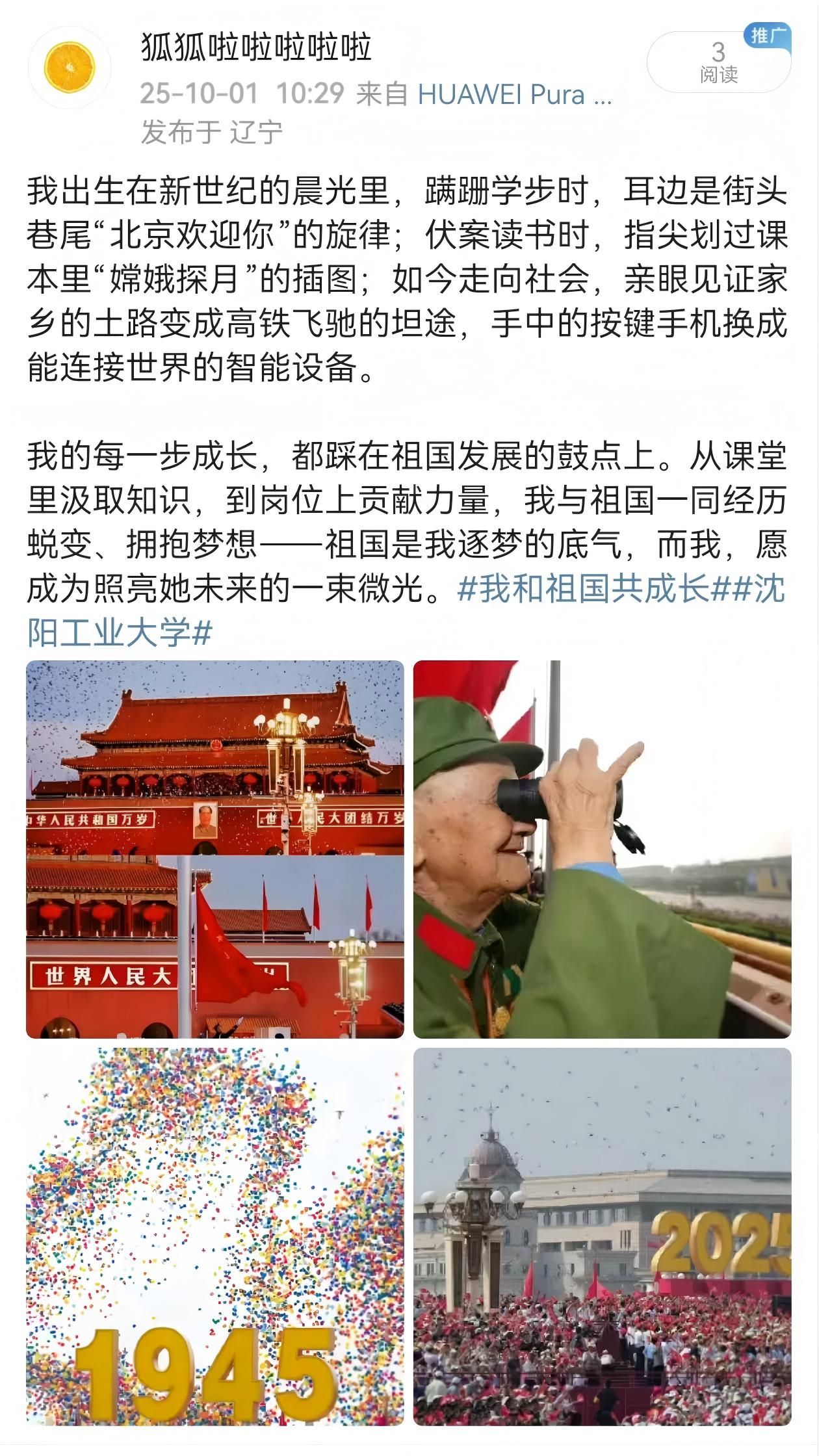 学校通过录制“青春逢盛世 倾心献祝福”庆贺中华人民共和国成立76周年视频,开展“铸牢中华民族共同体意识”座谈会、社区红色电影观影周、“我心中的东北抗联”抗战故事讲述、云端合唱、红色经典书目推荐、“青春闪耀祖国大地”网络打卡等活动,搭建起理论学习和实践体验相结合的教育体系。学生们在视频录制中以青春之名祝福祖国,在座谈中深化了对民族团结的重要性认识,在光影叙事中感受浴血抗争的英雄壮歌,在故事讲述中重温了抗联将士不屈不挠的斗争精神,在云端合唱中弘扬抗战精神,在经典阅读中与历史对话,在网络分享中传递青春奋斗力量,进一步坚定了将个人理想与国家命运紧密相连的信念,激发了服务国家战略、投身民族复兴的内生动力,强化“强国有我”的责任和担当。