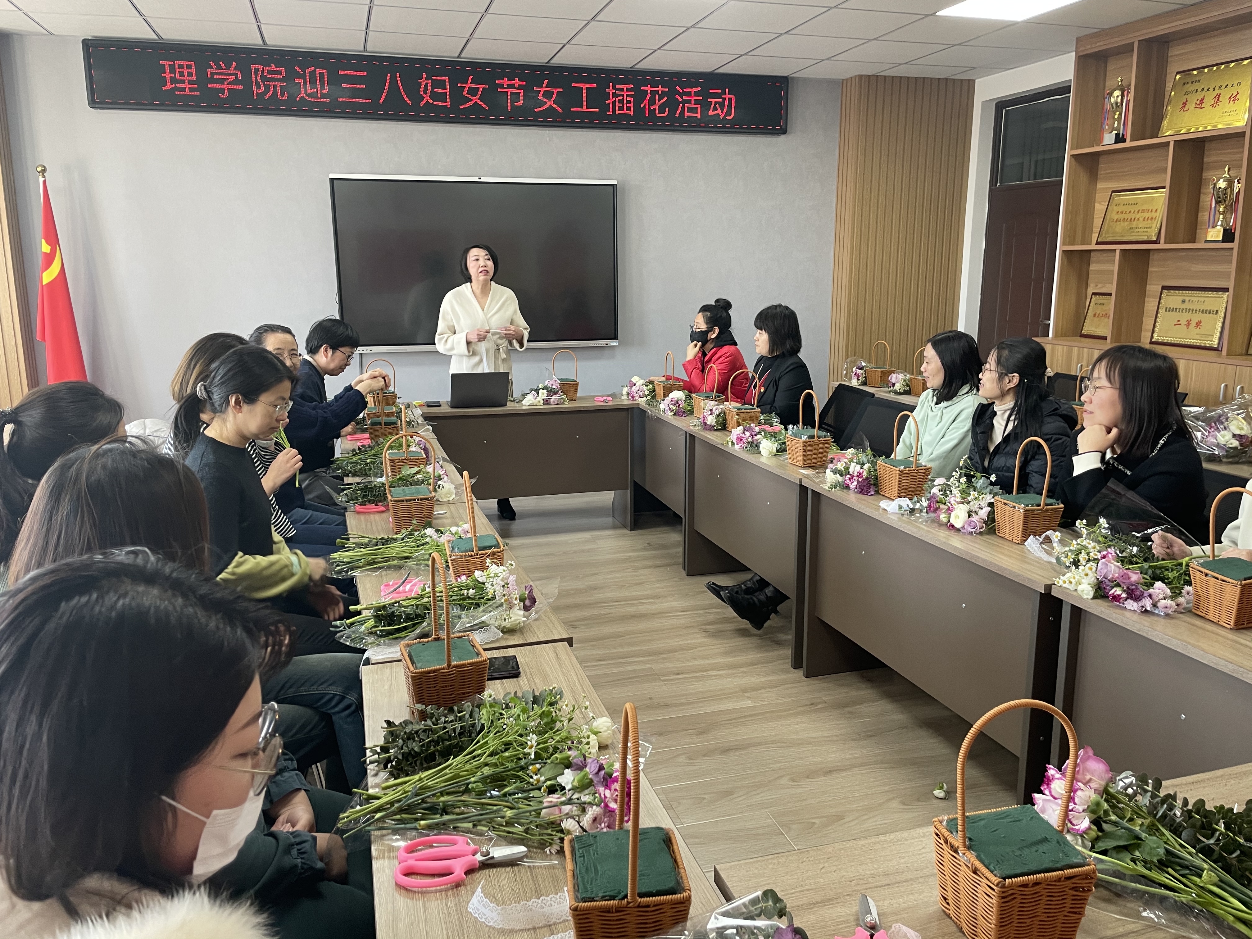 为进一步丰富女性教职工的文化生活,培养兴趣爱好、陶冶高尚情操,引导健康阳光、积极向上的生活态度,各二级单位举办了形式多样的手工艺、体育竞技和文艺表演等活动。机械工程学院举办“创意水果拼盘竞赛”活动、材料科学与工程学院举办“匠心独具,‘陶’你喜欢”陶艺制作活动、理学院举办“‘师’情谱花艺,巾帼绽芳华”插花活动、经济学院举办“巾帼跃动,助力发展”接力跳绳比赛、文法学院举办非遗文化景泰蓝掐丝珐琅画制作活动、外国语学院举办花艺沙龙课、软件学院举办“编织美丽,手握幸福”主题手链编织活动、后勤集团举办“团扇贴花半遮面,巧手插花香校园”系列活动、离退休党总支举办“文化共建心向党,巾帼携手绽芳华”庆祝活动。