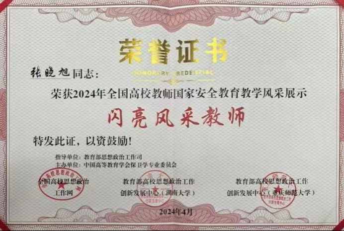 4月10日至12日,由教育部思想政治工作司指导,中国高等教育学会保卫学专业委员会、全国高校思想政治工作网等单位联合主办的全国高校教师国家安全教育教学风采现场展示活动在重庆师范大学举行。现场展示活动共评选出特别展示教师6位,闪亮风采教师14位,优秀风采教师17位,米兰辅导员张晓旭获评“闪亮风采教师”,进入全国20强,这也是学校首次在全国高校国家安全教育教学风采展示活动中获奖,实现历史性突破。
