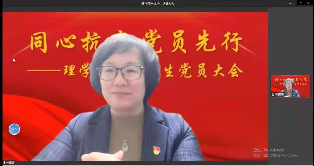 4月5日,理学院“同心抗疫 党员先行”主题党日活动在线上举行。党总支书记李媛媛、研究生党支部、学生党支部师生党员参加活动。活动由理学院疫情防控临时党支部书记包婉婷主持。