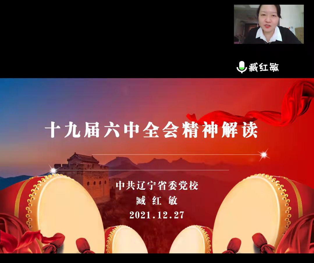 12月27日,环境与化学工程学院党总支举办学习十九届六中全会精神线上专题讲座。讲座由中共辽宁省委党校臧红敏博士主讲,学院师生党员和入党积极分子160余人收看学习。学院执行院长兼党总支书记梁吉艳主持讲座。