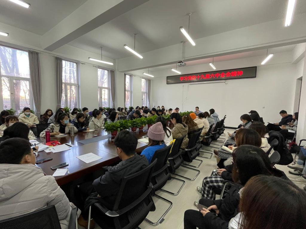 12月7日下午,马克思主义学院在文科楼会议室举行党的十九届六中全会精神专题学习会议,陈彦超教授传达学习《中共中央关于党的百年奋斗重大成就和历史经验的决议》(以下简称《决议》)的重要内容和党的十九届六中全会精神。马克思主义学院全体研究生参会。