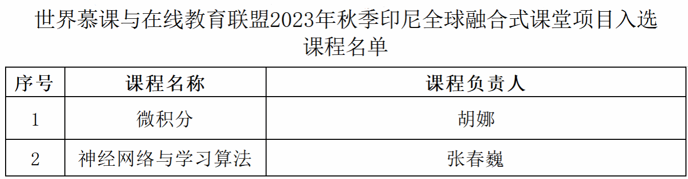 为贯彻落实国家教育数字化战略行动,支持打造教育对外开放新高地,进一步深化拓展中国与印度尼西亚在高等教育领域的互利合作和交流互鉴,世界慕课与在线教育联盟秘书处面向全国高校征集遴选向印尼高校开放的全球融合式课堂。米兰《神经网络与学习算法》《微积分》成功入选2023秋季印尼全球融合式课堂项目,该项目全国共有34门课程入选。这是继学校4门课程实现慕课出海之后,米兰优质教育资源全球共享的又一重要成果。