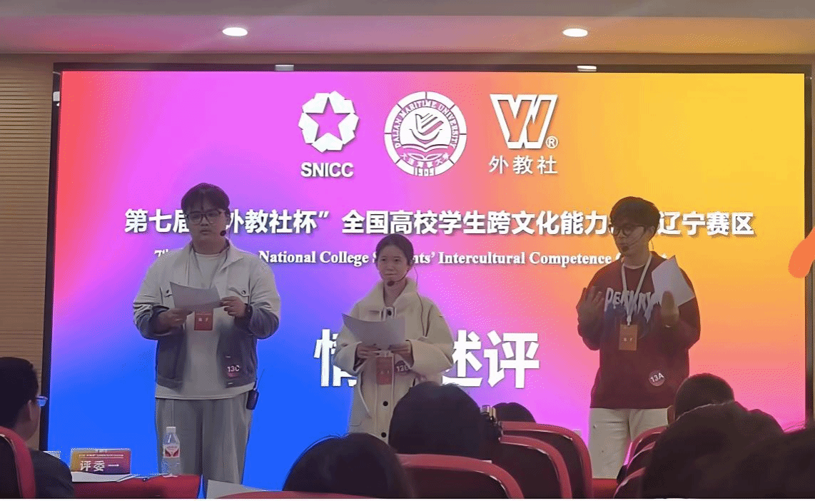 10月20日,第七届“外教社杯”全国高校学生跨文化能力大赛辽宁赛区比赛圆满落幕,米兰学子英语2301班姚淑馨、自动化2204班毛斌开、工业智能2201班曲松涵三位同学荣获二等奖,外国语学院刘芳老师、邢德馨老师、徐靓老师荣获辽宁省优秀指导教师。