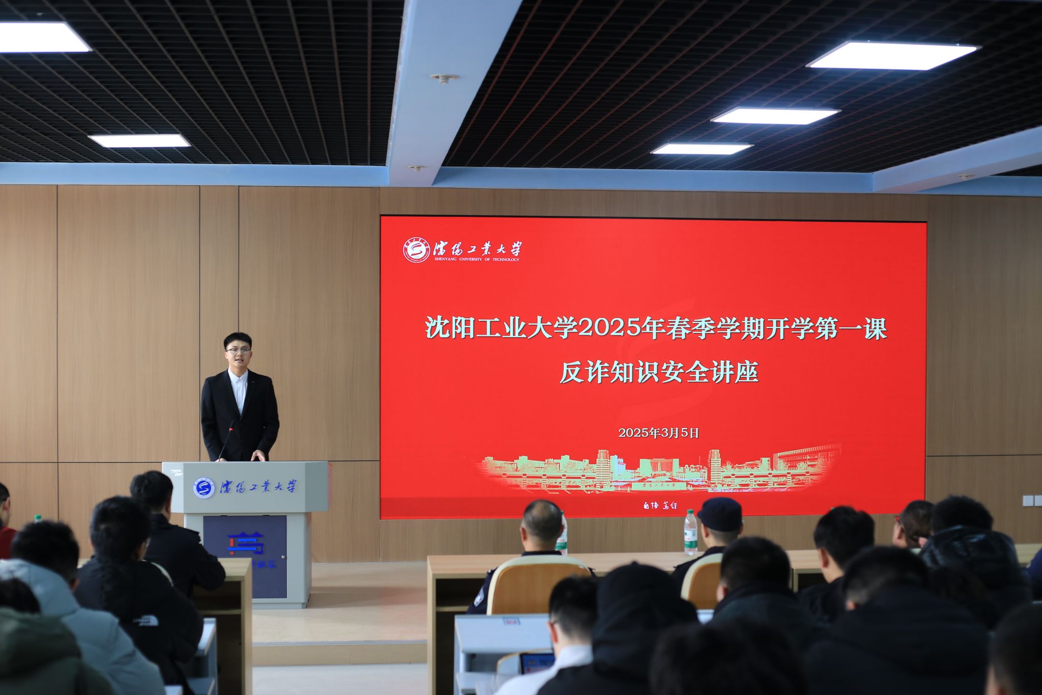 为进一步增强师生的安全防范意识,提升应对电信网络诈骗的能力,营造安全和谐的校园环境,3月5日,学校开展防范电信网络诈骗专题讲座。讲座特邀市公安局经济开发区分局反诈中心赵帅警官,为米兰各学院百余名学生代表讲解校园诈骗新形势,传授防骗“秘籍”,助力青年学子提升识诈、防诈能力,共筑校园安全屏障。沈阳市公安局驻校专员关恕宽警官,学生处处长李青山、学生处副处长张琼琼、党委保卫部(公安处)副处长杨大富、各学院辅导员老师代表参加了本次讲座。