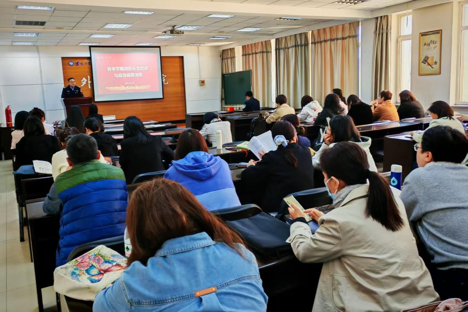 5月7日下午,外国语学院在文科楼419会议室开展消防安全专项培训及应急疏散演练活动。本次专项培训邀请校公安处副处长杨大富主讲,活动由外国语学院党总支书记兼副院长杜振君主持,全体教师参加了此次培训。