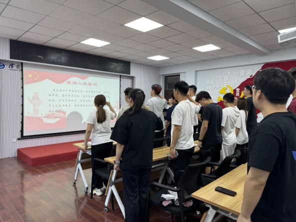 全体党员面向党旗重温入党誓词。铮铮誓言中,毕业生党员铭记责任使命。硕士毕业生党员表示:“重温誓词让我深刻意识到,毕业不是终点,而是以党员标准服务社会的新起点。”