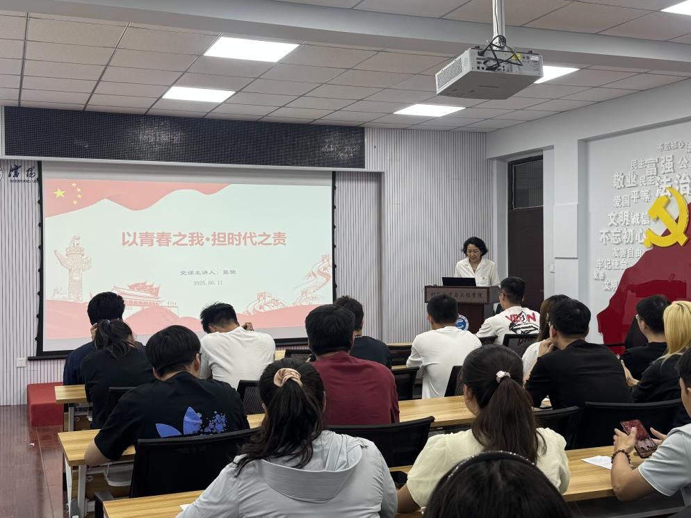 张驰院长以“以青春之我,担时代之责”为题,结合党的二十大精神与中央八项规定精神,为支部全体党员讲授专题党课。她强调,作为新时代青年党员,要始终牢记身份,严守纪律底线,保持清正廉洁作风;同时立足专业所长,将个人发展融入国家制造业强国战略,在科研攻关与行业实践中勇当先锋、绽放青春光彩。