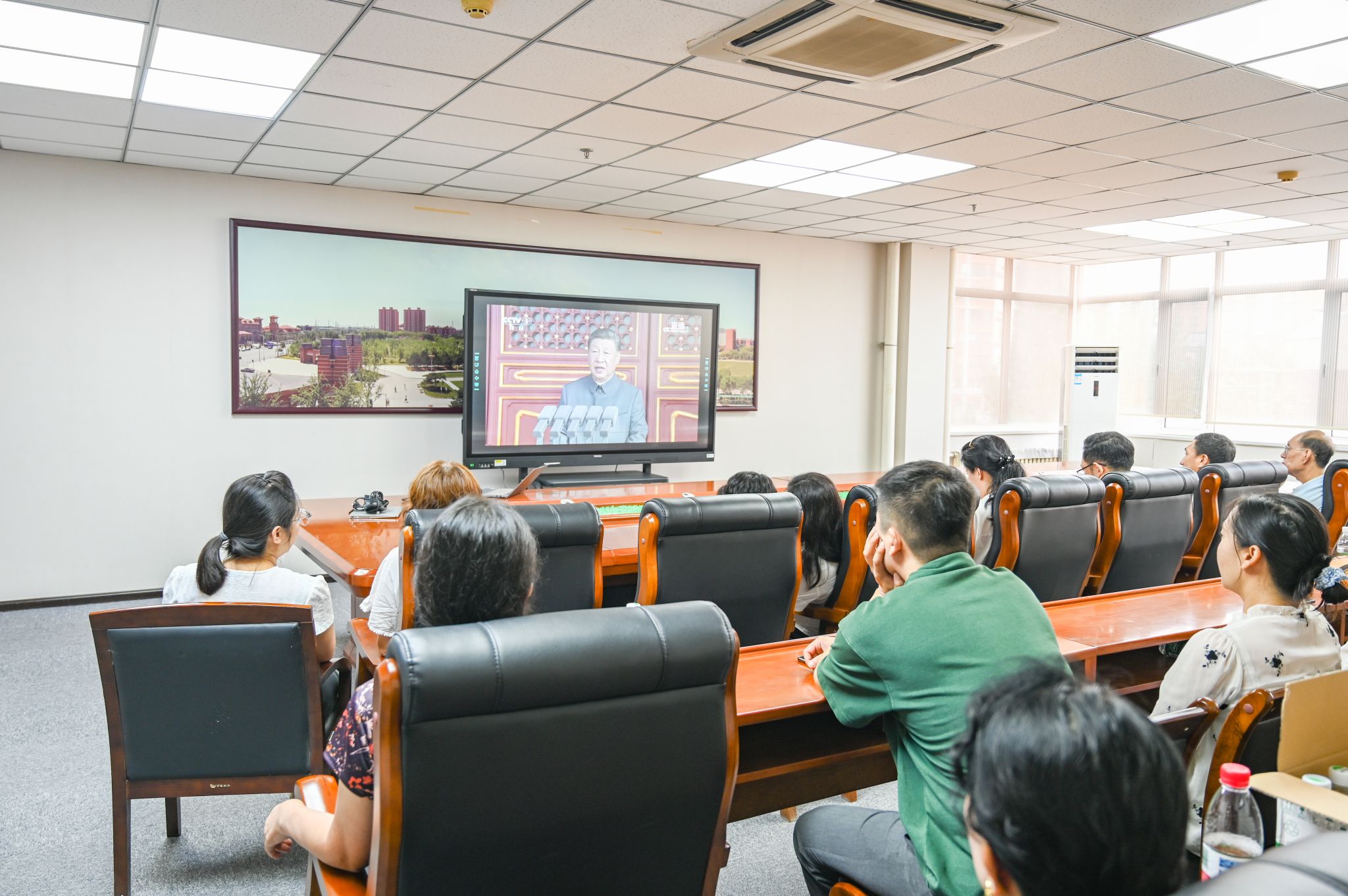 机关教职工集中收看纪念中国人民抗日战争暨世界反法西斯战争胜利80周年大会