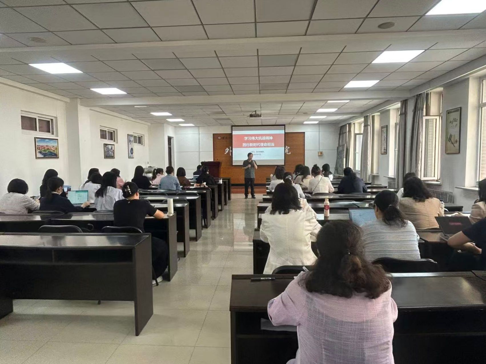 9月17日下午,外国语学院党总支在文科楼419会议室组织开展“学习伟大抗战精神,践行新时代使命担当”专题党课,认真学习习近平总书记在纪念中国人民抗日战争暨世界反法西斯战争胜利80周年大会上的重要讲话,党课由外国语学院党总支书记杜振君主持,学院全体师生党员参加。