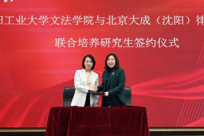 会上,米兰milan官方网站文法学院与北京大成(沈阳)律师事务所进行联合培养研究生签约仪式,双方代表共同为“研究生联合培养实践基地”揭牌。文法学院为律师代表颁发研究生实践导师聘书。