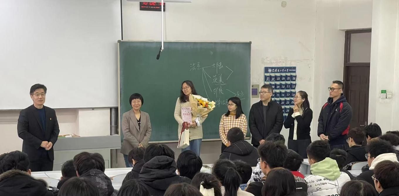 活动中,马克思主义学院领导班子及教师代表向陈虹教授献花并赠送纪念品,授课班级学生以朗诵形式向陈虹教授献上祝福。陈虹教授对学院的关怀和同学们的祝福表示感谢。她表示,此次仪式将成为她难忘的记忆和宝贵的精神财富,未来将继续坚守立德树人的初心使命,做工大学子成长成才道路上的引路人。