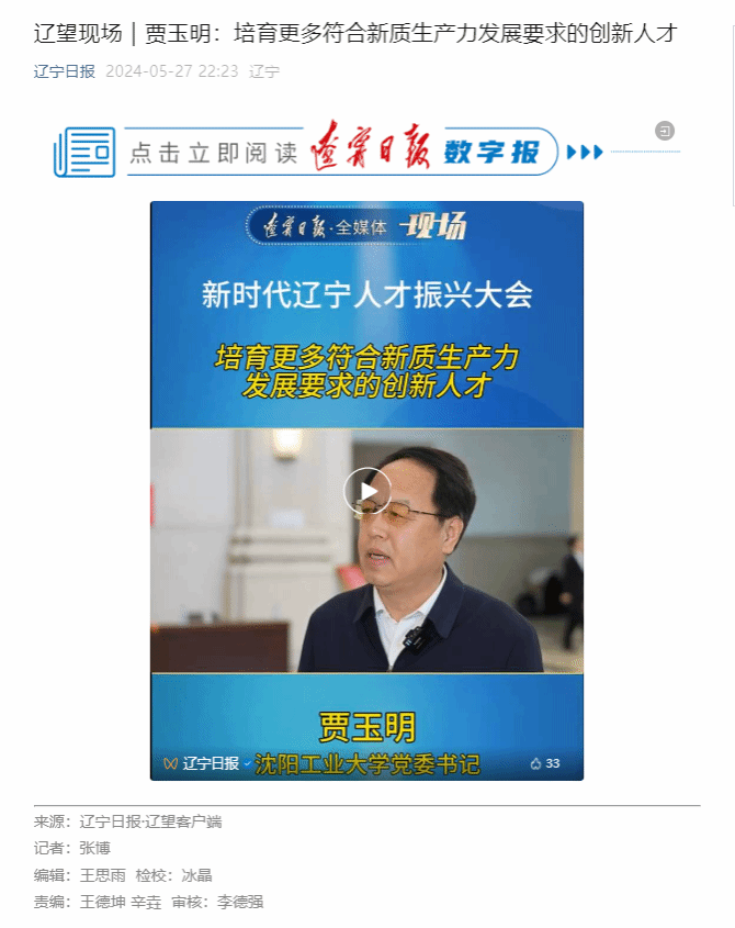 5月27日,新时代辽宁人才振兴大会在沈阳召开,米兰党委书记贾玉明参会并在现场接受采访。