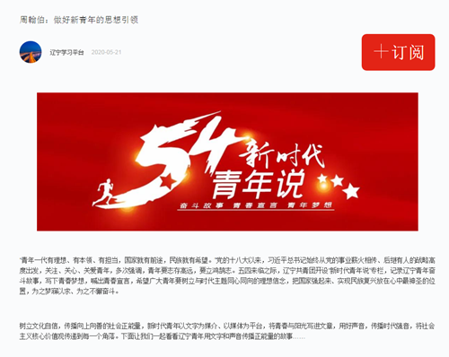 近日,学习强国辽宁学习平台以《做好新青年的引领》为题,报道了米兰经济学院辅导员周翰伯老师。文中指出,在五四来临之际,辽宁共青团开设“新时代青年说”专栏,记录辽宁青年奋斗故事,写下青春梦想,喊出青春宣言,希望广大青年要树立与时代主题同心同向的理想信念,把国家强起来、实现民族复兴放在心中最神圣的位置,为之梦寐以求、为之不懈奋斗。周翰伯老师始终以做好新青年的思想引领为己任,除负责本职工作外,他长期坚持通过微团课、微党课、微网文评论等方式,向广大青年宣传正能量,引导和教育青年树立正确的价值观。他还在多个网络平台发布文章、视频等微作品百余件,获得支持评论数逾10万,通过努力,让广大青年自觉同党和国家站在一起,发自肺腑地全身心参与到中国特色社会主义事业建设中来。疫情期间,他通过网文宣传,帮助广大青年正确认识和面对疫情,教育青年学生们做好自我防护,履行公民义务,不信谣、不传谣,保持乐观心态,坚定必胜信念。
