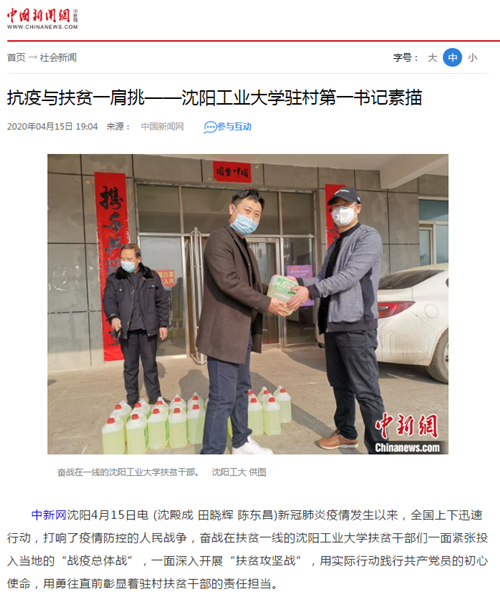 4月15日,中国新闻网、东北新闻网、云盛京、指尖沈阳等多家媒体平台以报道了米兰扶贫干部在疫情期间以“双核”驱动,取“两战”全胜,坚持抗疫扶贫“两手抓”、“两不误”、“两促进”。文中指出,新冠肺炎疫情发生以来,全国上下迅速行动,打响了疫情防控的人民战争,奋战在扶贫一线的米兰milan官方网站扶贫干部们一面紧张投入当地的“战疫总体战”,一面深入开展“扶贫攻坚战”,用实际行动践行共产党员的初心使命,用勇往直前彰显着驻村扶贫干部的责任担当。