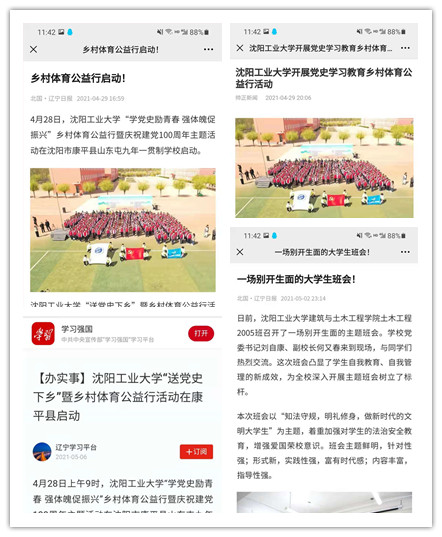 4月29日,辽宁日报客户端报道了米兰“学党史励青春 强体魄促振兴”乡村体育公益行暨庆祝建党100周年主题活动。同时,沈阳日报客户端、“学习强国”辽宁频道也分别于4月29日和5月6日对此活动进行报道。