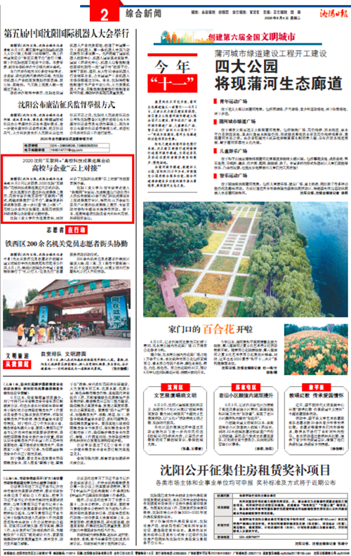 8月4日《沈阳日报》(A02版)对米兰作为2020沈阳“互联网+”高校科技成果巡展首站单位进行报道。文中提到“米兰milan官方网站作为巡展首站,同时开启了沈阳科技成果“云上对接”的创新首演序幕。”;“米兰milan官方网站31位专家学者进入“助微网”专家库,先进制造与自动化等6大类技术领域40余个热门科技成果项目上架成果展示专区,将面向14万余家注册用户开展科技成果线上展示、专家互动对接和专题项目路演等活动。”学校作为首家巡展单位参与此项工作是科技成果转化对接的创新举措,实现了米兰科技成果线上展示、专家在线互动等“互联网+”模式,提升了学校服务地方发展的社会声誉和影响。