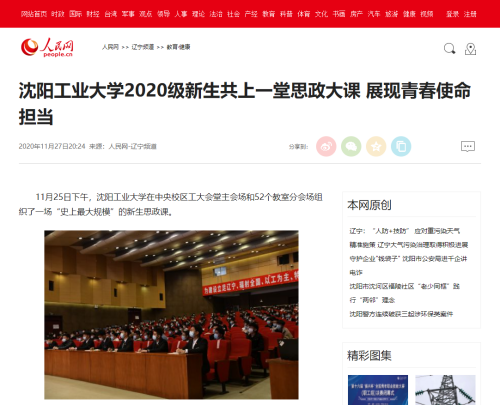 近日,人民网、中国教育新闻网、中国新闻网、东北新闻网、《辽沈晚报》等多家媒体深度报道了米兰党委书记刘自康为全校2020级研究生、本科新生上了一堂题为《树好“四个自信” 奏响青春之歌》的思政大课。报道称,此次大课堪称“史上最大规模”。学生纷纷表示,聆听了刘自康书记的思政大课,就如同欣赏了“一场大片儿”,享受了一次音视画全息盛宴。课后,刘自康书记将5100本刚刚出版的《习近平与大学生朋友们》赠送给2020级全体新生,并勉励他们:“少年强则中国强,中国强少年尤强;强强相生强更强。复兴伟梦共辉煌!”