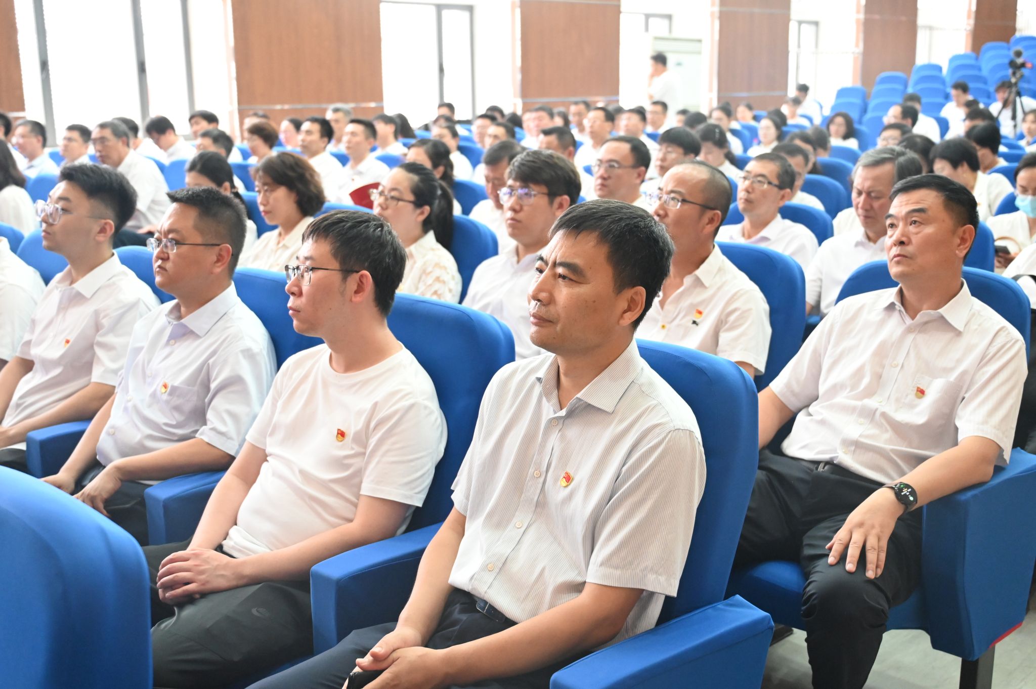 与会全体党员在博物馆一楼序厅面向党旗重温入党誓词。贾玉明以《深学细悟,实干创新,为尽快建成国内一流大学而团结奋斗》为题讲授主题教育专题党课。他紧紧结合学校发展实际,聚焦参观学习的启示和体会,主题教育的任务目标,坚持好、运用好“六个必须坚持”的立场观点方法,推动主题教育取得实效等内容进行深刻阐释,为党员、干部上了一堂立意高远、主题突出、思想深刻、内涵丰富的党课。