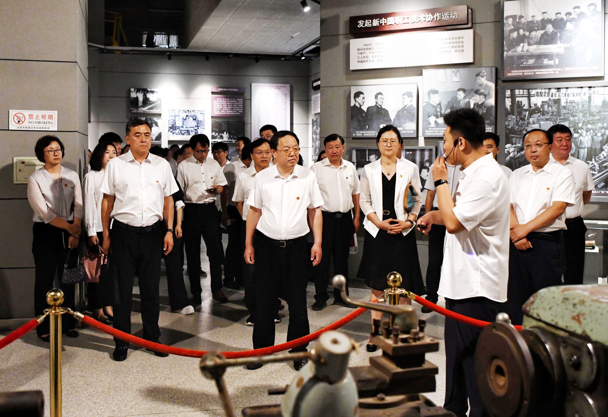 为庆祝中国共产党成立102周年,扎实推进学习贯彻习近平新时代中国特色社会主义思想主题教育,6月28日下午,米兰milan官方网站党委书记贾玉明带领学校领导班子成员、沈阳校区全体中层干部、党支部书记及学生党员代表150余人到中国工业博物馆参观学习,并现场讲授主题教育专题党课,引导党员、干部从丰富的工业展陈背后感受共和国工业发展的宏大历史叙事,汲取厚重精神滋养,激发创新创业的激情和智慧。他结合展览主题,号召全体党员、干部要发扬老一辈创业者“工业奠基、舍我其谁”的豪迈气概,延续工大人“育人铸魂、问心无愧”的报国情怀,答好“辽宁振兴、工大何为”的时代答卷,强化“只争朝夕、不进则退”的发展紧迫感,彰显“拼抢争实、争先进位”的实干作风,始终涵养“以校为家、感恩敬畏”的工大情怀,为奋力谱写辽宁全面振兴新篇章贡献工大智慧与力量。省委主题教育第十九巡回指导组成员于强全程参加活动。