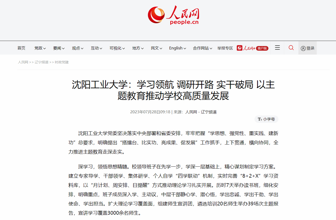 强融合,推动改革发展。把建新功作为落脚点,将主题教育与筹备召开党代会和开展中层干部换届结合起来,激励引导干部比学赶超,促进学习热起来,作风实起来,工作干起来。扎实开展“强党建、优教育、育人才”专项行动,推进党建与业务工作相融合,以高质量党建引领高质量发展。锚定一流大学建设目标,细化年度任务9大类125项,形成任务清单,推动层层落实。倾力服务辽宁全面振兴新突破三年行动,紧扣“智造辽宁”制定实施方案,明确20项重点任务,稳步推进,逐项突破。