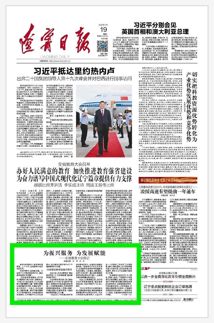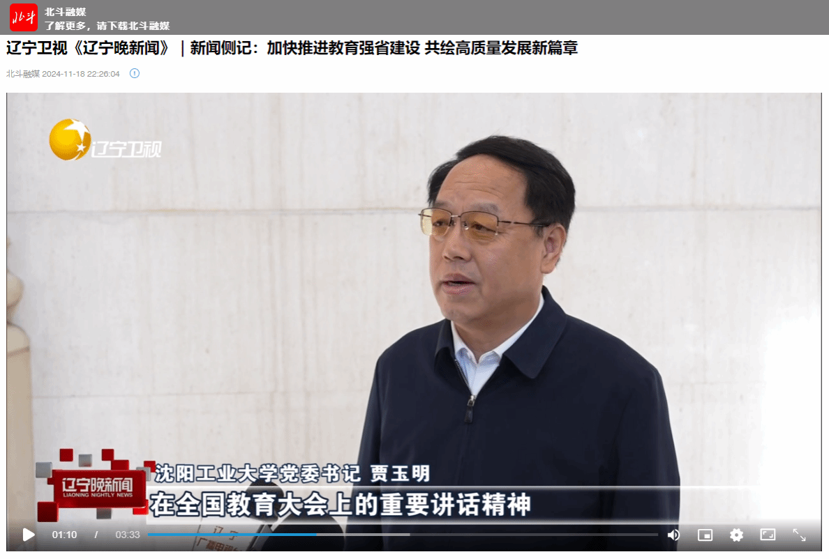 11月18日,全省教育大会在沈阳召开。米兰党委书记贾玉明在会后接受采访,他表示,应切实将教育优势转化为振兴发展优势,将努力建立科技创新与人才培养相互支撑、带动学科高质量发展的有效机制,为辽宁全面振兴提供人才和智力支持。辽宁日报、北斗融媒等媒体平台进行相关报道。