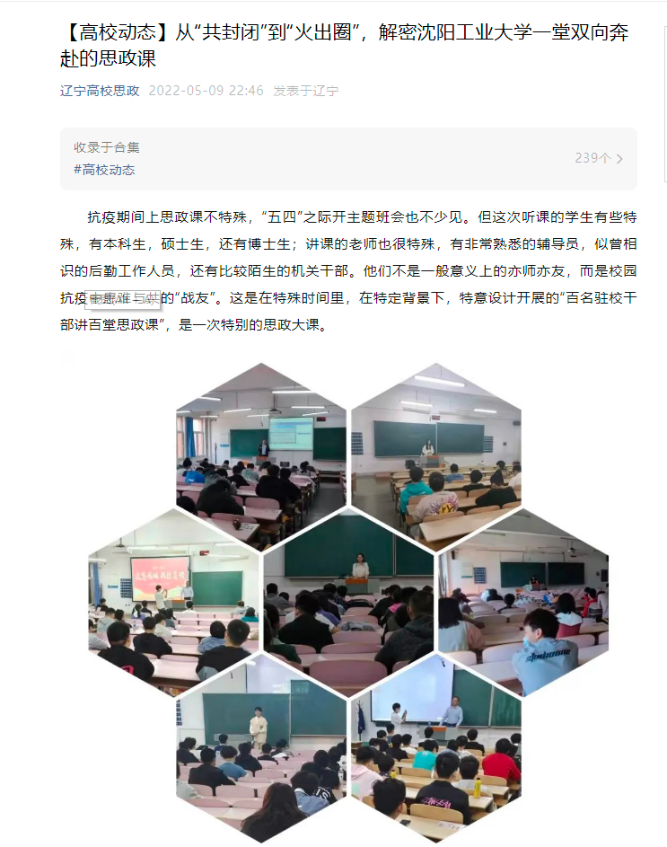 新闻来源:辽宁高校思政微信公众号,2022年5月9日