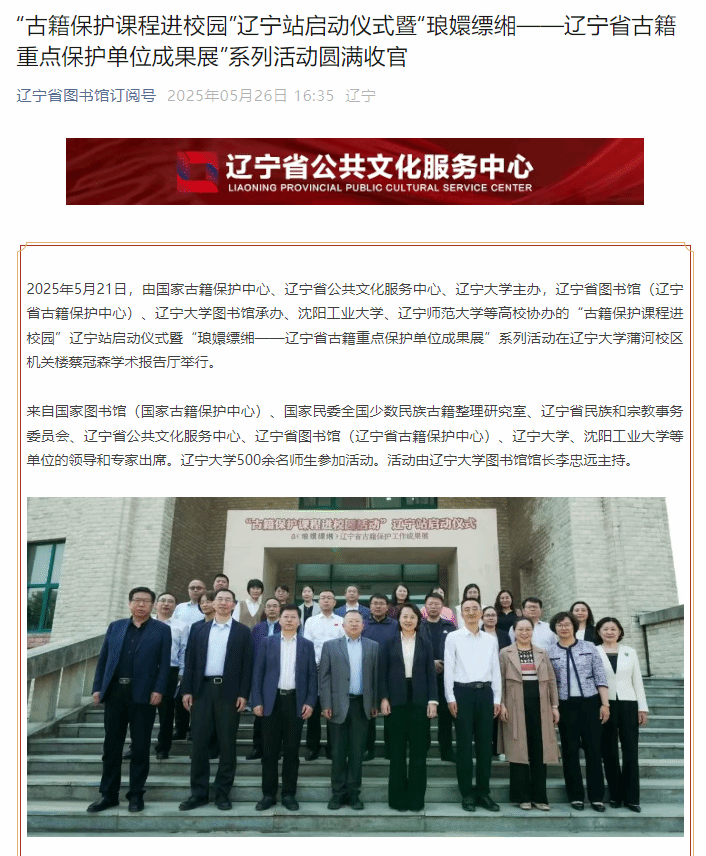新闻来源:辽宁省图书馆订阅号 2025年5月26日