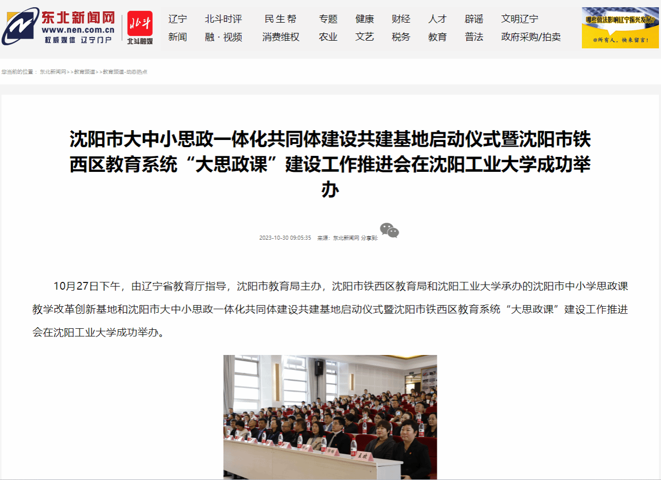 10月27日下午,由辽宁省教育厅指导,沈阳市教育局主办,沈阳市铁西区教育局和米兰milan官方网站承办的沈阳市中小学思政课教学改革创新基地和沈阳市大中小思政一体化共同体建设共建基地启动仪式暨沈阳市铁西区教育系统“大思政课”建设工作推进会在米兰milan官方网站成功举办。