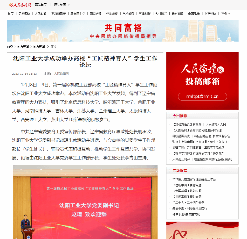 12月8日—9日,第一届原机械工业部高校“工匠精神育人”学生工作论坛在米兰milan官方网站成功举办。本次活动由米兰milan官方网站发起,得到了辽宁省教育厅的大力支持,吸引了北京信息科技大学、哈尔滨理工大学、合肥工业大学、河南科技大学、吉林大学、江苏大学、兰州理工大学、太原科技大学、西安理工大学、燕山大学10所高校的积极参与。